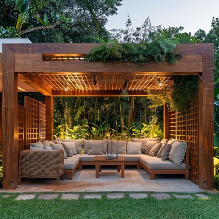 - فكّر في الإضاءة: تركيب إضاءة خافتة أو سبوتات داخل البرجولة يضيف لمسة فاخرة.